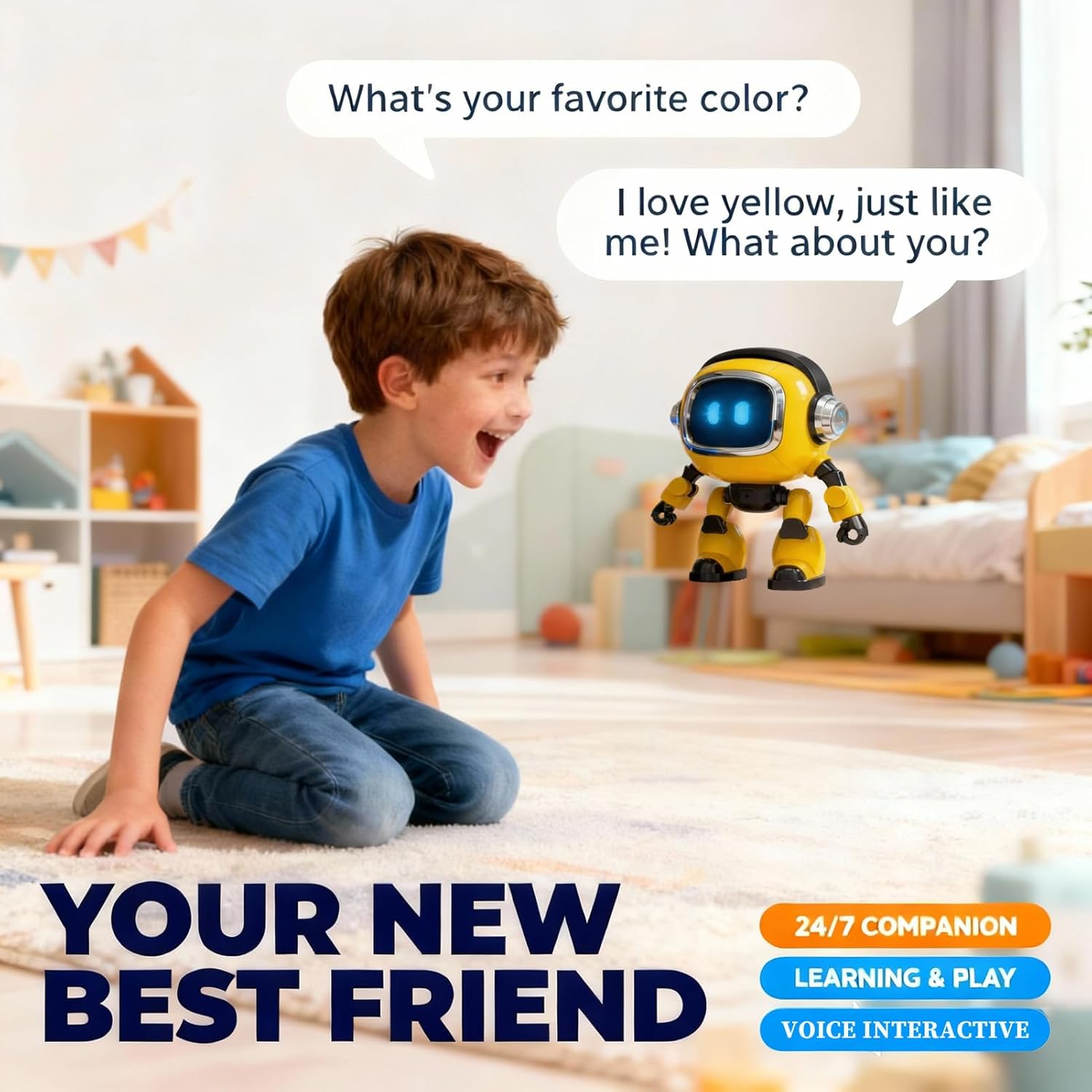 This robot engages children with fun, interactive conversations and responses. It’s designed to spark imaginative play and create engaging moments.