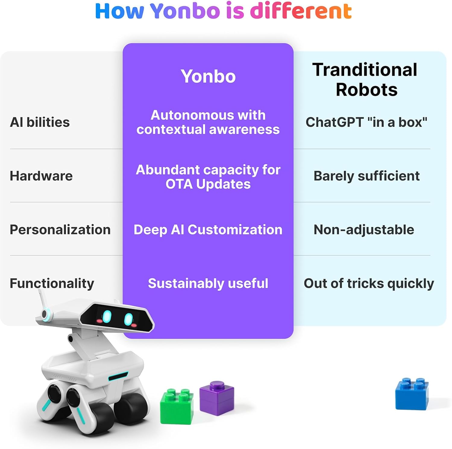 Yonbo was born from a simple belief: In a world where screens dominate our children’s lives and parents struggle to balance work and connection, we imagined something better—an intelligent companion that grows with your child, understands their emotions, and supports them every step of the way.