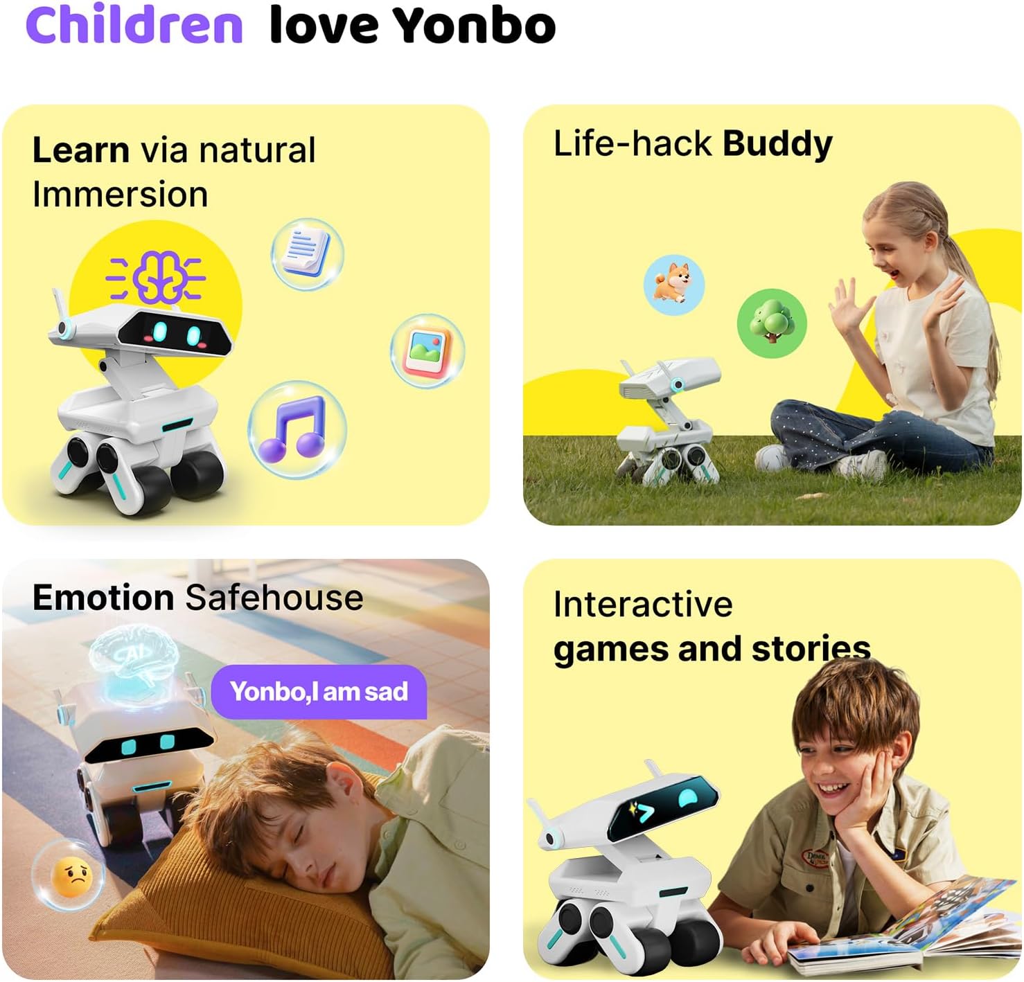 Screen-Free Fun & Continued Growth: With 1,000+ songs stories and games, Yonbo ai robot keeps kids entertained in a screen-free environment with a constantly updated content library via lifetime OTA to suit kids’ evolving interests. Its long-term memory remembers key dates, events, interests and emotions, deepening connection over time. Perfect for replacing iPad, protecting eyes, promoting creativity and imagination. Yonbo robot friend is a long-term partner for your kid’s growth and happiness.